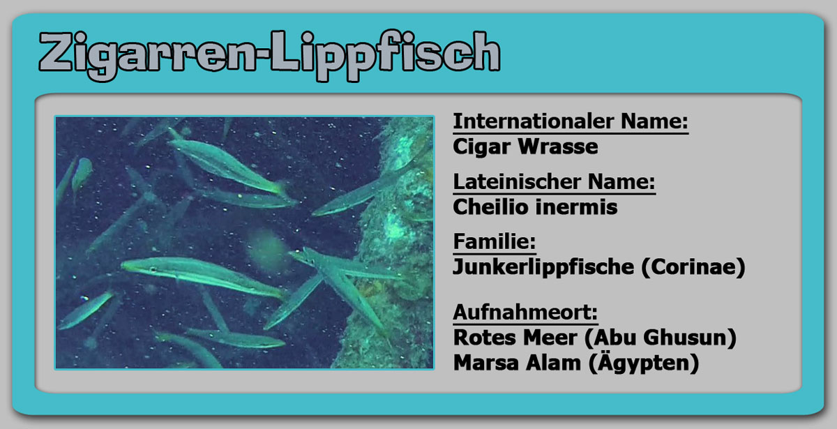 Zigarren-Lippfische sind dünn, lang und rund geformt, so wie eine Zigarre eben. Die Grundfarbe ist sehr variabel und kann aus Grün-, Braun-, Orange- und Gelbtönen bestehen. Große adulte Tiere können an ihren Seiten unmittelbar hinter den Brustflossen ein ebenso variabel gefärbtes Muster entwickeln, das sogar blassrosa erscheinen kann. Juvenile Tiere sind grün oder braun und verfügen über einen breiten Längsstreifen an den Seiten.
