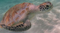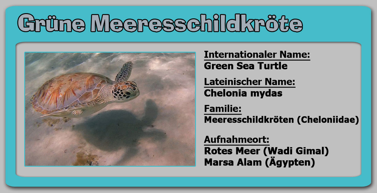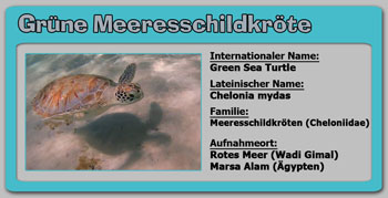Der zweite Name dieser Art, Grüne Meeresschildkröte, mag etwas freundlicher klingen als die Bezeichnung Suppenschildkröte! Gemeint ist jedoch das gleiche Tier.