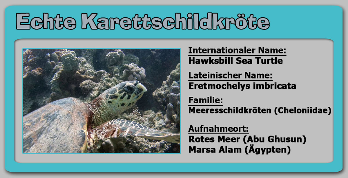 Echte Karettschildkröten zählen zu den stark gefährdeten Meeresbewohnern, sie sind vom Aussterben bedroht! Sie werden bis zu 90 cm lang und 75 kg schwer.