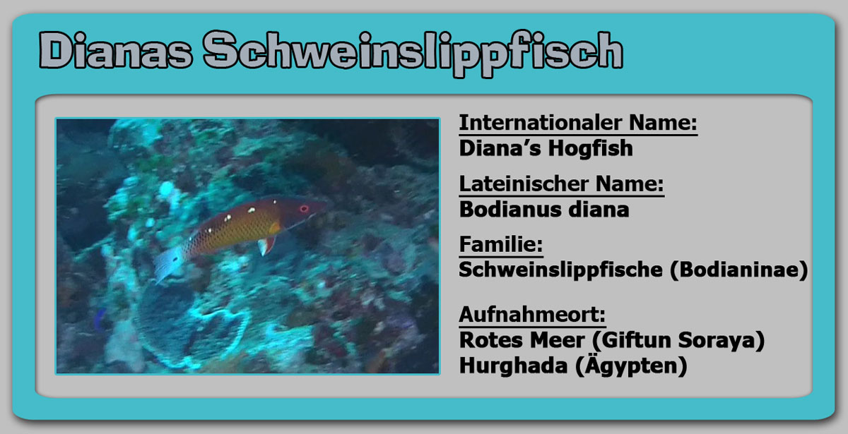 Dianas Schweinslippfisch ist in seiner adulten Form vornehmlich bronzefarben oder braun gefärbt. Vereinzelt kommen auch heller (gelblich orange) gefärbte Tiere vor.