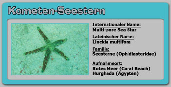 Der Kometen-Seestern bekam seinen deutschen Namen, weil es zahlreiche Exemplare mit unregelmäßigen Armlängen gibt. Wenn sich die Tiere zur Vermehrung teilen, trennen sie einen Arm ab. Ist der nachwachsende noch recht klein, ähneln die Tiere oft einem Kometen.